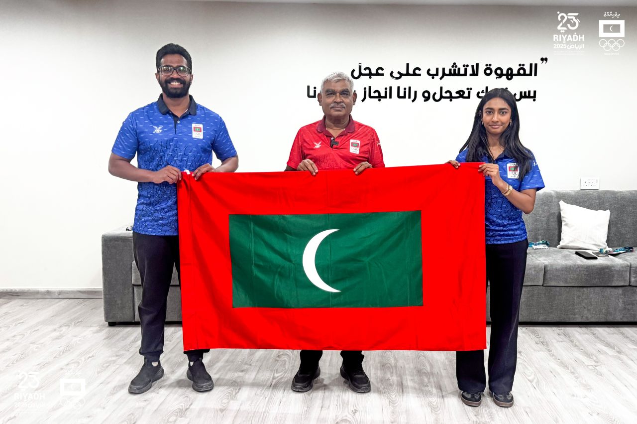 އިސްލާމިކް ސޮލިޑާރިޓީ ގޭމްސްގެ ދިދަ އުފުލާނެ ދެ އެތުލީޓުންނާ ރަސްމީކޮށް ދިދަ ހަވާލުކުރެއްވީ، ރިޔާދުގެ އެތުލީޓްސް ވިލެޖްގައި ބޭއްވި ރަސްމިއްޔާތެއްގައި އެމްއޯސީ (މޯލްޑިވްސް އޮލިމްޕިކް ކޮމެޓީ)ގެ ރައީސް މުޙައްމަދު ޢަބްދުއްސައްތާރު އެވެ.