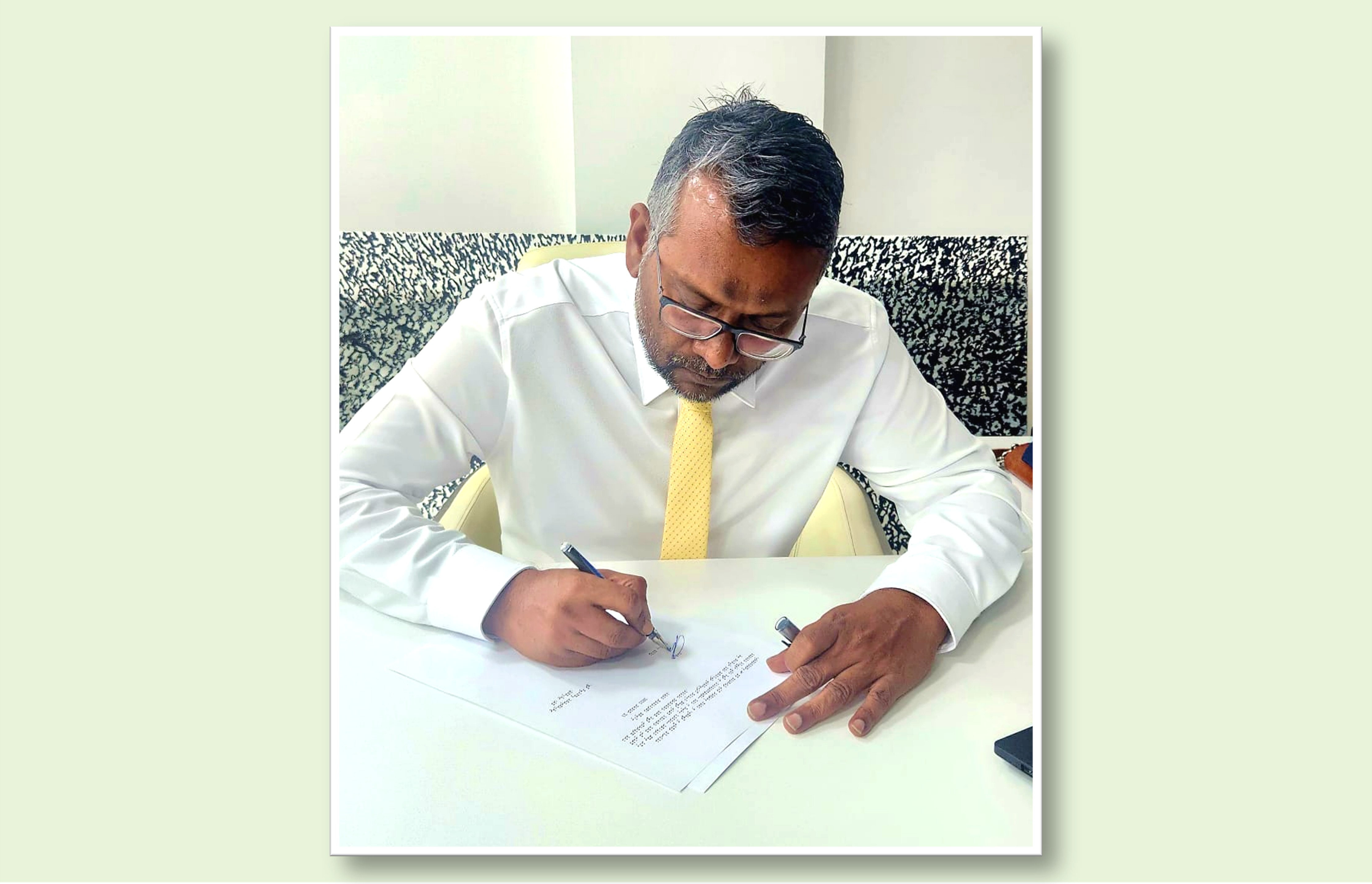 އިސްތިއުފާ ދެއްވާ ފައްޔާޒު ލިޔުއްވާފައިވާ ސިޓީގައި ވިދާޅުވެފައިވާ ގޮތުން މަގާމުން އެ މަގާމުން ފައްޔާޒް އިސްތިއުފާ ދެއްވަނީ އޭނާއަކީ 2028 ވަނަ އަހަރުގެ ރިޔާސީ އިންތިހާބުގައި ވާދަކުރުމުގެ ޝައުގުވެރިކަން ފާޅުކޮށްފައިވާ މީހަކަށް ވެފައި، އެހެން ބޭފުޅަކު ރަސްމީކޮށް އިއުލާނުކޮށްފައި ނުވި ނަމަވެސް އެ ޝައުގުވެރިކަން ހުރި އެހެން ބޭފުޅުންވެސް އިސް ސަފުގައި ތިއްބެވުމުން ޕާޓީގެ މަސައްކަތްތައް ކުރިއަށް ގެންދިއުމަށް ބޮޑެތި ގޮންޖެހުންތައް ހުރުމުން ކަމަށެވެ.