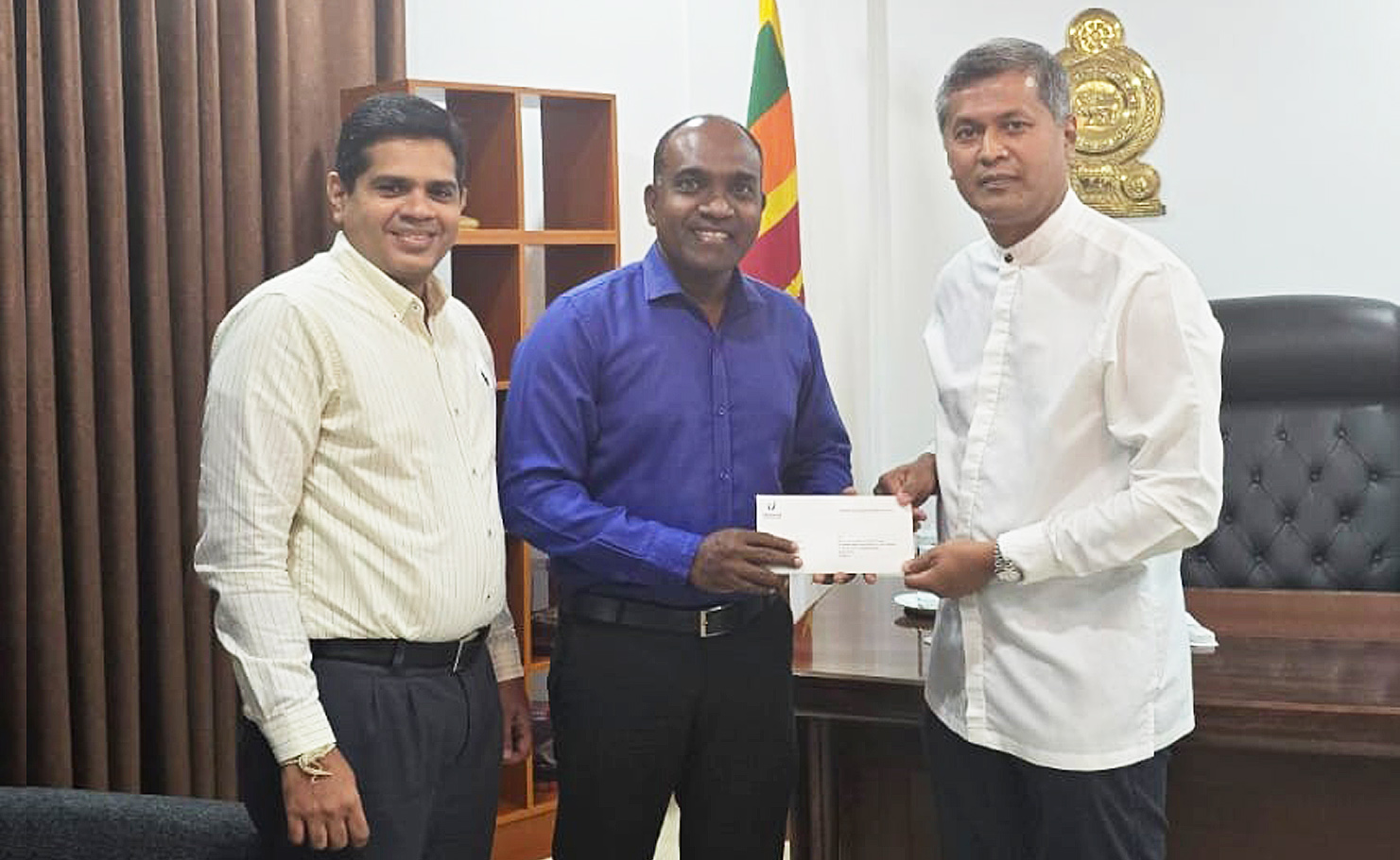 ޔުނިވާސަލް އިން އެ ފައިސާ ހަވާލުކުރީ ރާއްޖޭގައި ހުންނަ ސްރީލަންކާ ސަފީރު މުހައްމަދު ރިޒްވީ ހަސަންއާ އެވެ. ޔުނިވާސަލްގެ ފަރާތުން އެ ފައިސާ ހަވާލުކޮށްދެއްވީ ޔުނިވާސަލް ފައުންޑޭޝަންގެ ރައީސް އަދި ޔުނިވާސަލް އެންޓަޕްރައިސަސްގެ އެސިސްޓެންޓް ޑައިރެކްޓަރ ކޮމްޕްލައަންސް އިޔާޒް ވަހީދެވެ.