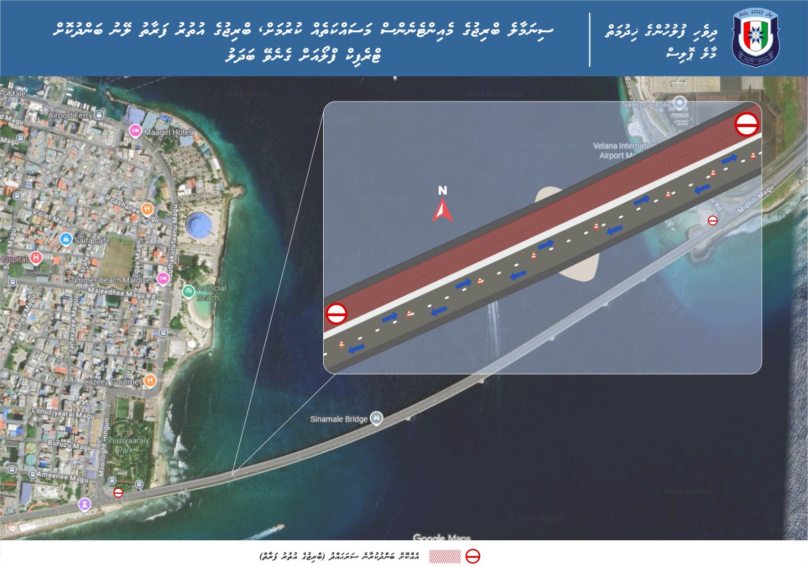 އެހެންކަމުން އުތުރު ފަރާތު ލޭނު ބަންދުކުރުމުން ދެކުނު ފަރާތު ލޭނުގައި ދެކޮޅަށް ދުއްވޭނެ ކަމަށް އެ ޕޯސްޓުގައި ފުލުހުން ބުނެފައި ވެއެވެ.