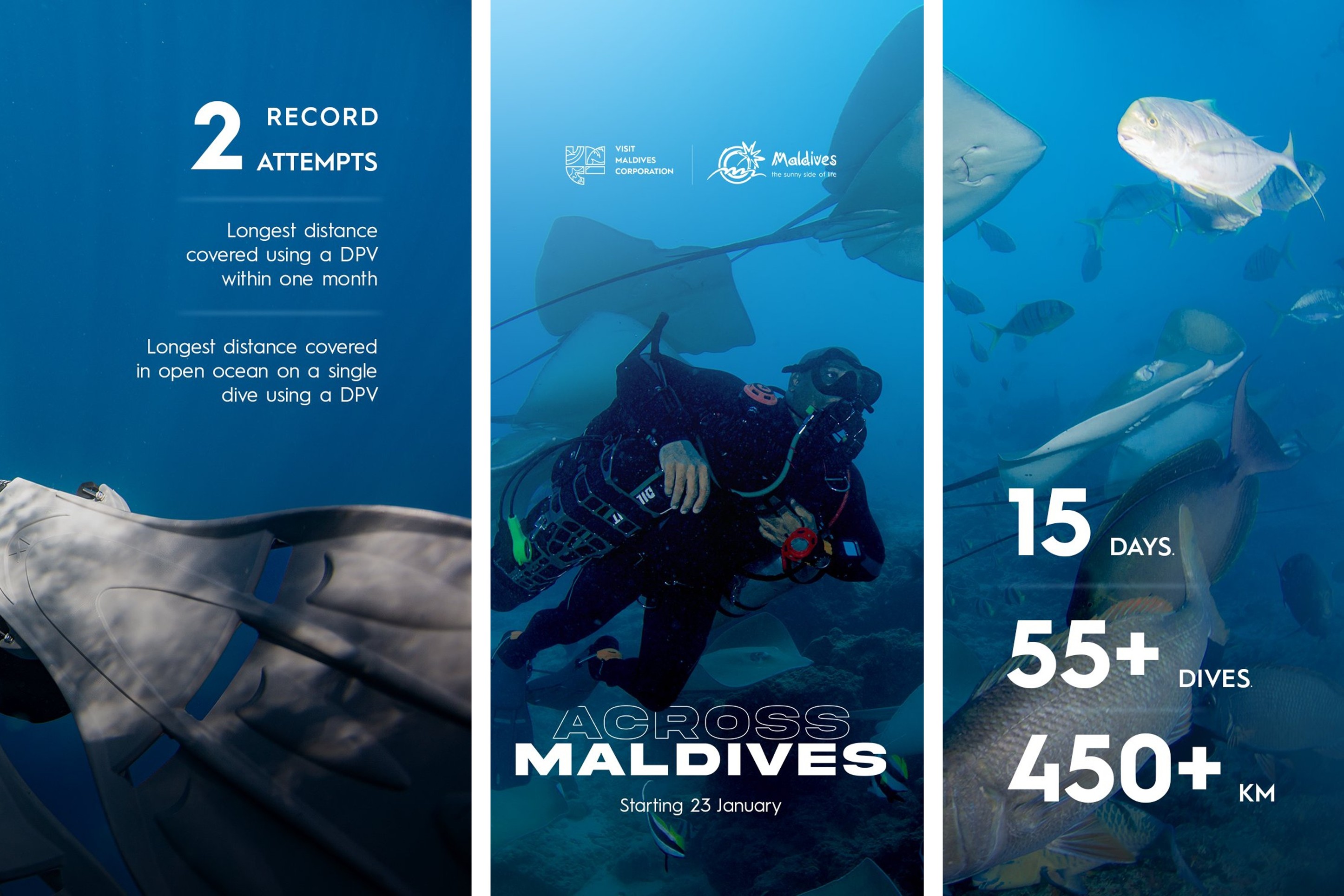 އެގޮތުން ދެ ރިކޯޑެއް މި ހަރަކާތުގައި ގާއިމުކުރުމަށް އަމާޒު ހިފާފައި ވާއިރު، އެ ދެ ހަރަކާތަކީ، ޑީޕީވީ ބޭނުންކޮށްގެން އެއް މަސްދުވަސްތެރޭ އެންމެ ދިގު ރާސްތާއަކަށް ދަތުރުކުރުމުގެ ރިކޯޑާއި، ޑީޕީވީ ބޭނުންކޮށްގެން އެއް ފަހަރު ފީނައިގެން ކަނޑުގެ ސަރަހައްދެއްގައި އެންމެ ދުރަށް ދަތުރުކުރުމުގެ ރިކޯޑެވެ.