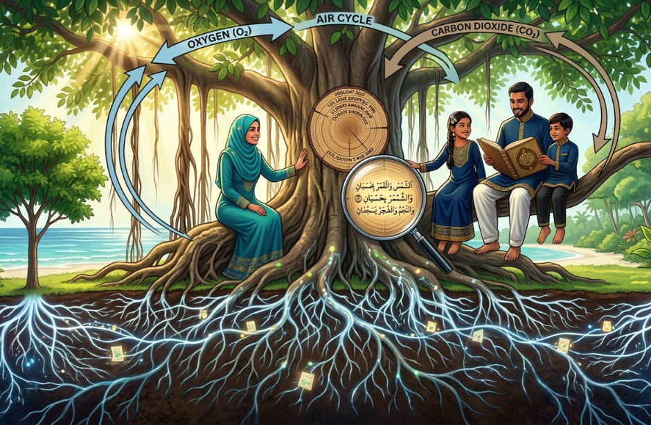 ހައިރާންވާންޖެހޭ ކަމަކީ، މިއަދު ސައިންޓިފިކް ލެބޯޓްރީތަކުންނާއި ތިމާވެށީގެ ދިރާސާތަކުން ފެންނަން ހުރި ހަގީގަތްތަކަކީ، މީގެ އެތައް ސަތޭކަ އަހަރެއް ކުރިން އިސްލާމީ ތަޢުލީމުތަކާއި ކީރިތި ޤުރުއާނުގައި ބަޔާންކުރައްވާފައިވާ ކަންކަމާ އެއްގޮތް ކަންތައްތަކެއް ކަމެވެ. ކާއިނާތަކީ ހަމަހިމޭން، ފުރާނައެއް ނެތް އެއްޗެއް ނޫންކަމާއި، އެއީ އޭގެ ޚާލިޤުވަންތަ ރަސްކަލާނގެއަށް ތަސްބީޙަ ކިޔަވައި، އިންސާނުންނާ މުޢާމަލާތްކޮށް، ދުނިޔޭގެ ދިރިއުޅުމުގެ ހަމަހިފަހައްޓައިދޭ ދިރޭ ނިޒާމެއްކަން ޤުރުއާނުގައި ތަކުރާރުކޮށް ހަނދާންކޮށްދެއްވާފައިވެއެވެ.