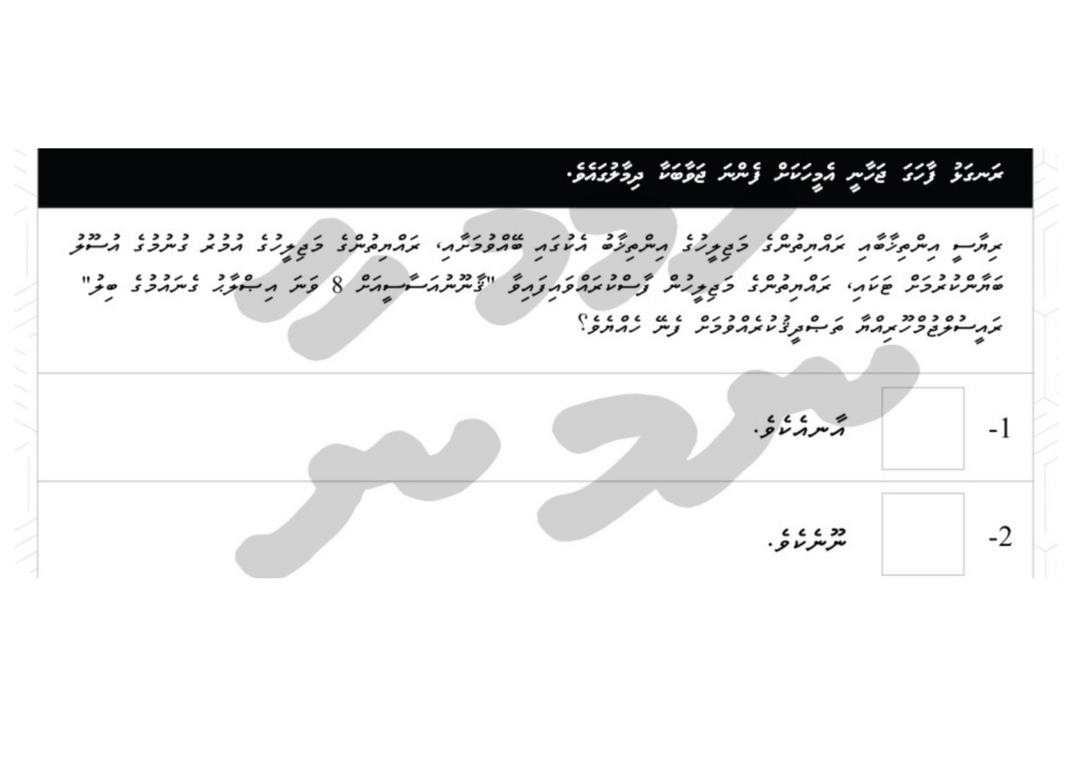 މި ވޯޓު ކަރުދާސްކޮޅުގެ ނަމޫމާ މިއަދު އީސީން އާންމުކޮށްފައި ވާއިރު، އެ ކަރުދާސްކޮޅުގައި ސުވާލަކަށް އޮތީ، ރިޔާސީ އިންތިހާބާއި ރައްޔިތުން މަޖލީހުގެ އިންތިހާބު އެކުގައި ބޭއްވުމަށާއި ރައްޔިތުން މަޖލީހުގެ އުމުރު ގުނުމުގެ އުސޫލު ބަޔާންކުރުމަށްޓަކައި ރައްޔިތުން މަޖިލީހުން ފާސްކުރައްވާފައިވާ "ގާނޫނު އަސާސީއަށް 8 ވަނަ އިސްލާހުގެ ގެނައުމުގެ ބިލް" ރައީސުލްޖުމްހޫރިއްޔާ ތަސްދީގުކުރަން ފެނޭ ހެއްޔެވެ. މިފަދައިންނެވެ.