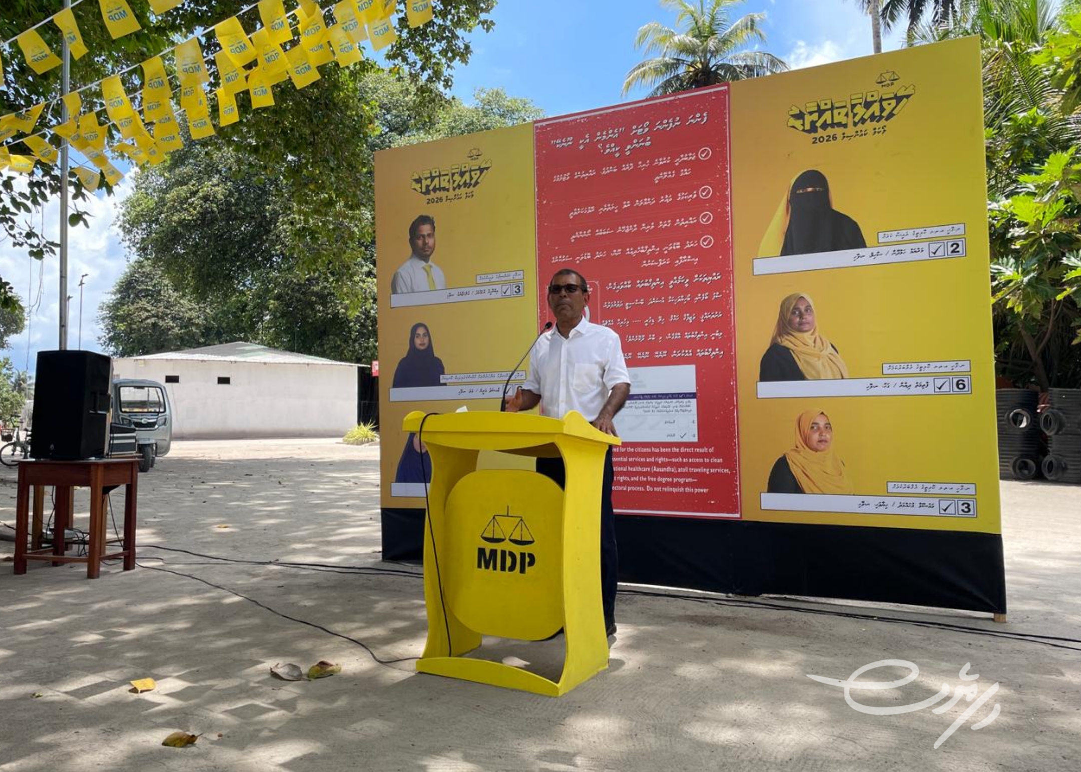 ރައީސް ނަޝީދު މިހެން ވިދާޅުވީ، އަންނަމަހުގެ 4 ވަނަދުވަހު ބޭއްވުމަށް ހަމަޖެހިފައިވާ، ލޯކަލް ކައުސިލްތަކާއި، އަންހެނުންގެ ތަރައްގީއަށް މަސައްކަތްކުރާ ކޮމެޓީތަކުގެ އިންތިހާބު، އަދި މައި ދެ އިންތިހާބު އެއްކޮށްލުމާ މެދުގައި ނަގާ ރައްޔިތުންގެ ފެންނަ ނުފެންނަ ވޯޓު ހިމެނޭ އިންތިހާބުގެ ކެމްޕޭނު ދަތުރުފުޅެއްގައި އެމްޑީޕީގެ ޓީމަކާއެކު ނ.އަތޮޅަށް މިއަދު ފެއްޓެވި ދަތުރުފުޅުގައި އެއަތޮޅު ޅޮހީގައި ބޭއްވި ޖަލްސާއެއްގައި ވާހަކަ ދައްކަވަމުންނެވެ.