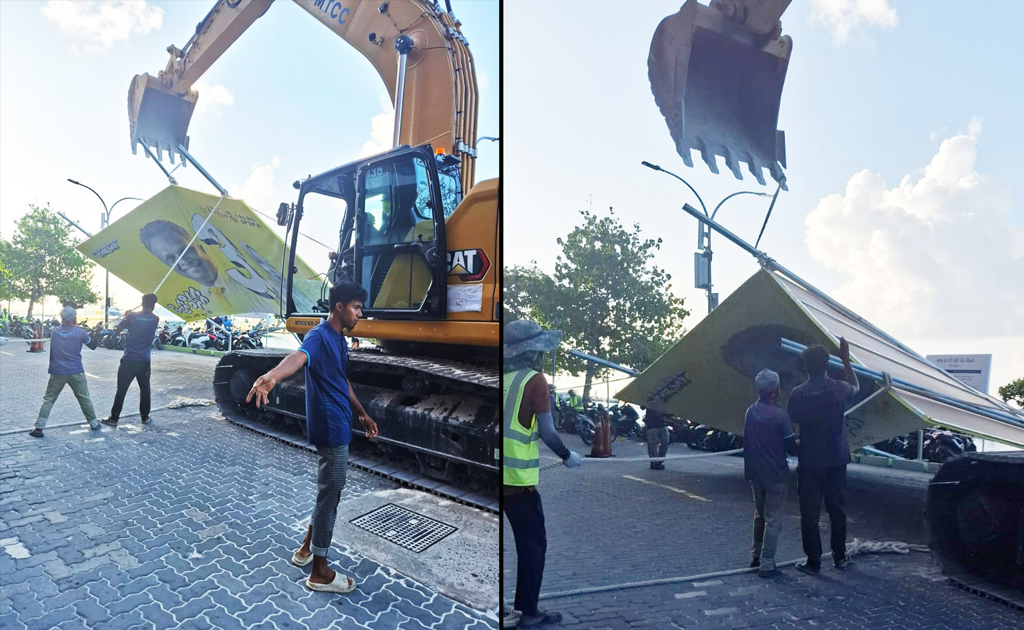 އެތަކެތި ނެގީ އެތަކެތި އިތުރަށް ބޭނުންނުކުރެވޭނެ ގޮތަށް ގެއްލުންދީފައެވެ. މޭޔަރު އާޒިމްގެ ބޮޑު ބިލްބޯޑު ނެގީ އެކްސްކަވޭޓަރެއް ބޭނުން ކޮށްގެންނެވެ.