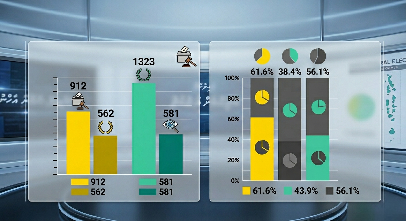 ވާދަކުރި ގޮނޑި: ޖުމްލަ 1,356 ގޮނޑީގެ ތެރެއިން އެމްޑީޕީން ކުރިމަތިލީ 912 ގޮނޑިއަށެވެ.