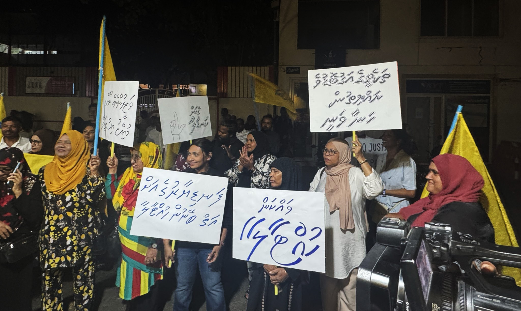 މުޒާހަރާގެ ބައިވެރިން ދަނީ ވާވާ އާއި މައިމޫން ދޫކޮށްލަން ގޮވާލަމުން ނެވެ.